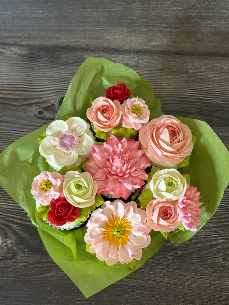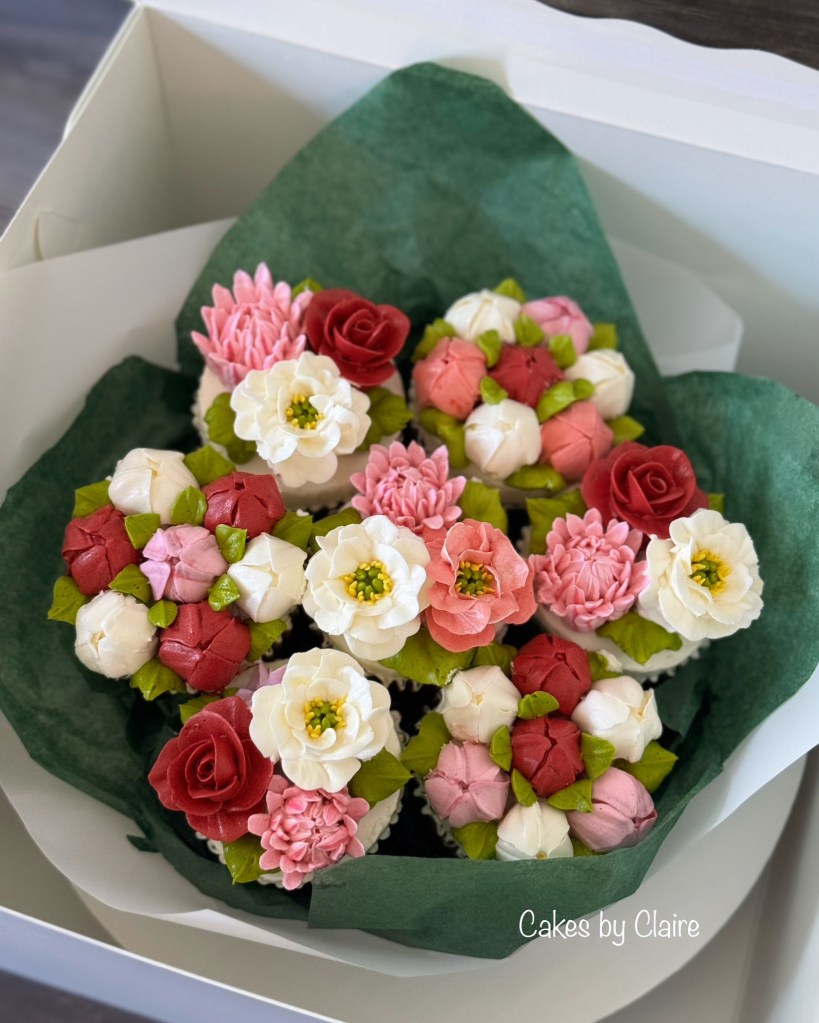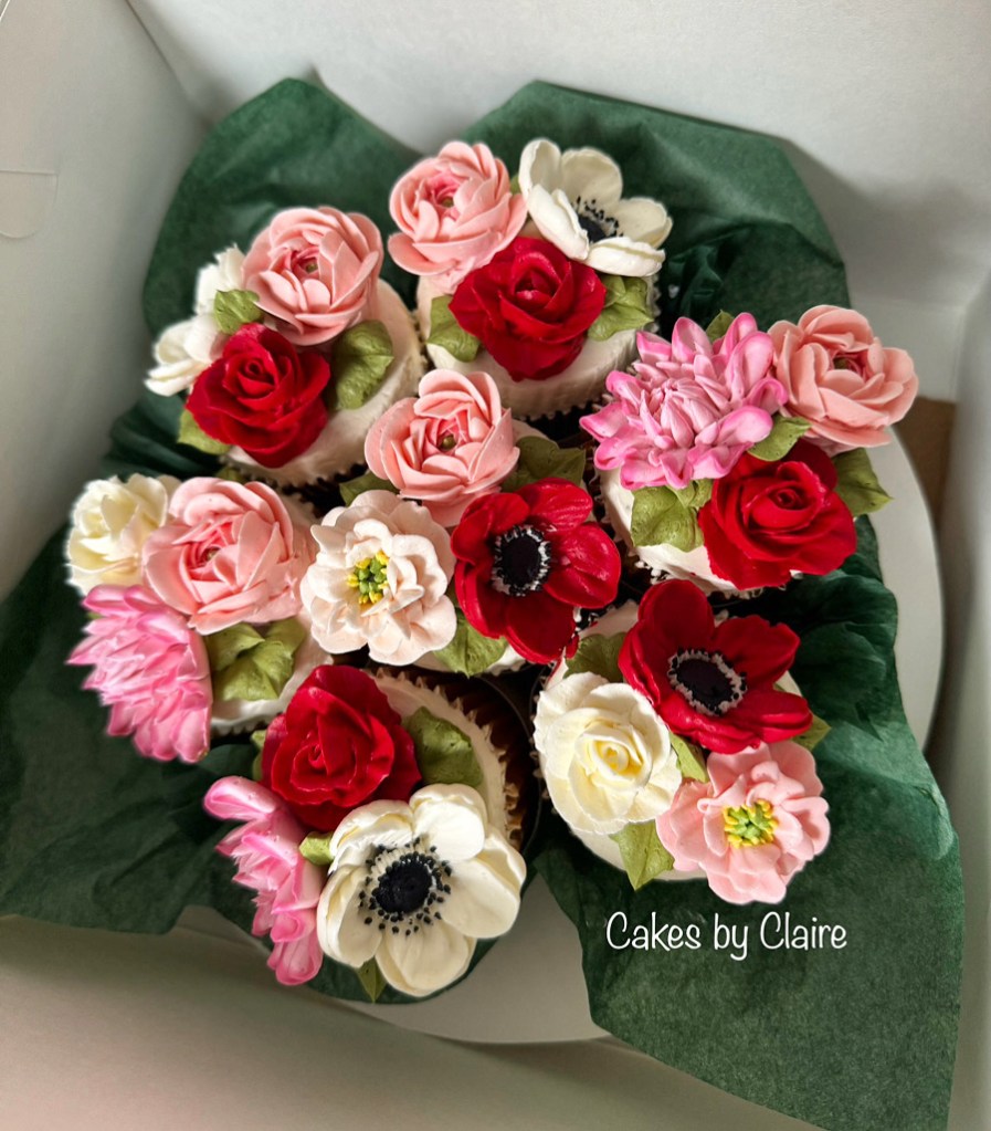 All cupcakes are designed with edible flowers