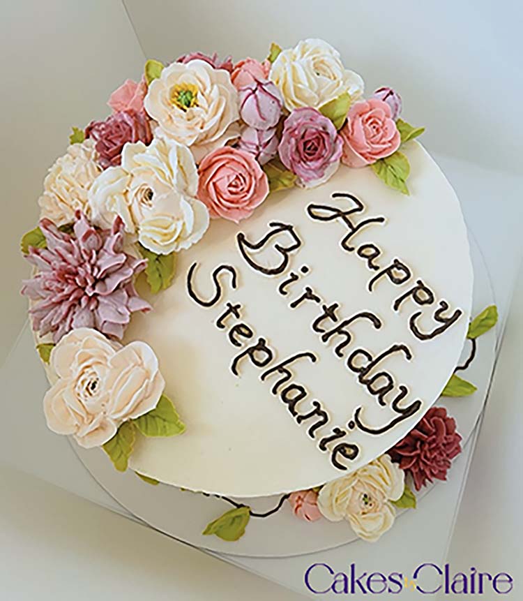 All decorations of the cake are edible which means flowers, leaves, and branches.